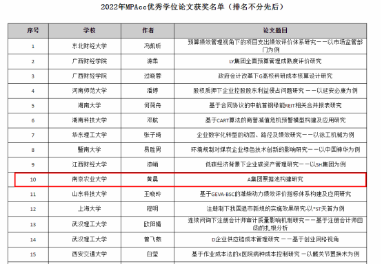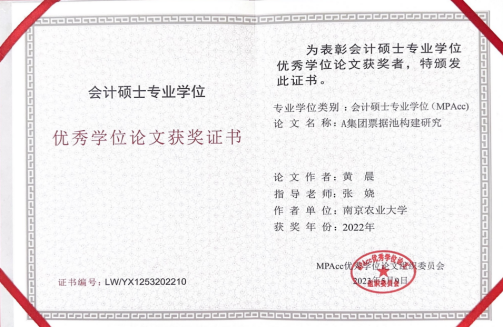 我校研究生荣获2022年全国MPAcc优秀学位论文奖